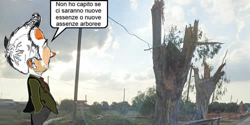 Sembrano una nuova specie di ulivi, per l'olio alternativo extra Vergine Secondo il PAESC le industrie di Galatina non producono CO2. Chi inquina? GLi alberi Non ho capito se ci saranno nuove essenze o nuove assenze arboree Che fine faranno questi alberi? Chiavuti Vuoi vedere che è in corso il Festival dell'Aria Consapevole? Con tutti questi tagli di nastri e di alberi c'è il rischio si sbaglino