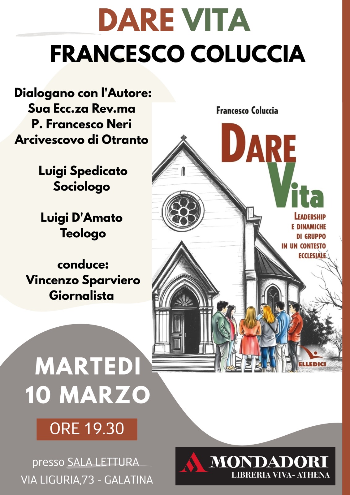 Presentazione del nuovo libro "DARE VITA" di don Francesco Coluccia presso la Sala Lettura in via Liguria, 73 a Galatina.